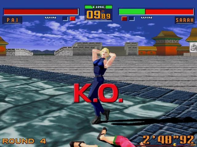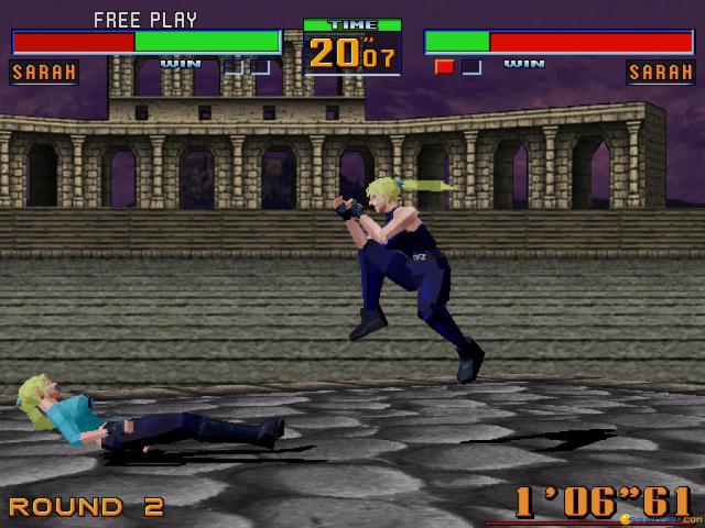 The very first Virtua Fighter game was an excellent 3D modern attempt in fighting genre, however it wasn't a very good 3D fighting game and it felt that more work needed to be put in the game. The second installment in the series was a huge improvement over the first game and of my all time favorite fighting games of all time. Virtua Fighter 2 offers a lot of improvements in terms of gameplay and graphics. The objective in the game is pretty much the same like in other fighting games: defeat your opponent. You have a total of 11 fighters to choose from where 9 are returning characters from the previous game and 2 new characters. The best innovation that I have in the game is the ability to change the size of the arena. You can adjust to be a small platform, which can be suitable for sumo-like fights where you need to knock your opponent out of the ring, all the way to a 82 meters long arena, which is very large for a fighting game. You can adjust the health meter all the way to infinite, which is good for using it for practices. The graphics are outstanding for its time and I love how you can move in the third dimension, however it is only good for dodging attacks. Any fighting game fan should have a copy of Virtua Fighter 2: it's fun and very beautiful. I do reccomend to download and play it.