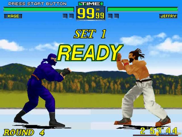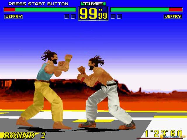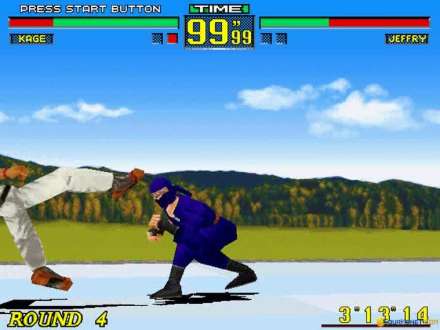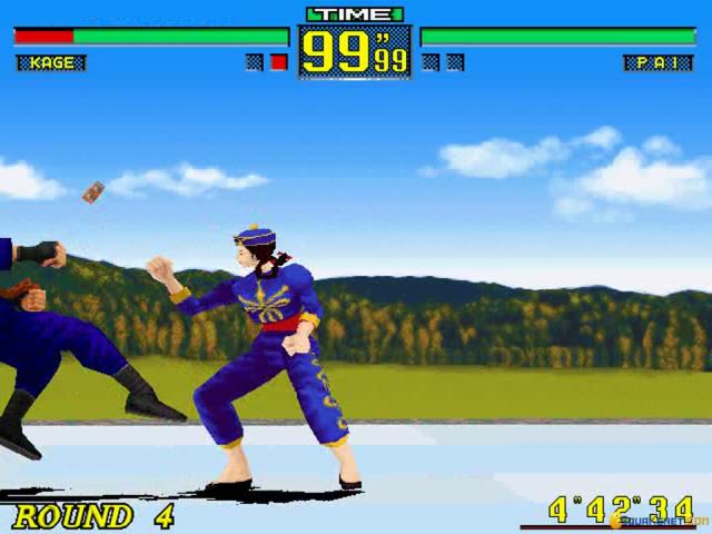 Virtua Fighter is notable for being the first one-on-one beat 'em up which brought the genre into 3D as well as its use of real-world fighting techniques rather than the commonly used fantasy-style moves of competitors like Street Fighter 2. Fortunately, the game's historical importance is not the only thing it has going for it, and it remains a fun and fluid fighter. The basic premise of Virtua Fighter is the same as every other such game and pits a variety of combatants against each other in a series of bouts that simply require them to knock the living daylights out of each other. There are eight fighters to choose from here each with the usual variety of punches and kicks and with plenty of combinations being possible, while battles take place against a number of different backdrops to add some visual variety. In terms of graphics, while Virtua Fighter was undoubtedly groundbreaking back in the day, it sadly now looks rather dated, with block and plainly detailed characters which are more comical than anything else. The gameplay itself though stands up somewhat better, with fighting that offers strategy and action in equal measure, while the sound is equally impressive. If you're used to the likes of Street Fighter 2 or Mortal Kombat though, the slower pace may be hard to adjust to as the game's slightly more realistic nature lends it a more thoughtful aspect. Apart from this though, this remains a enjoyable and slick fighter that is worth checking out for historians and fighting fans alike.