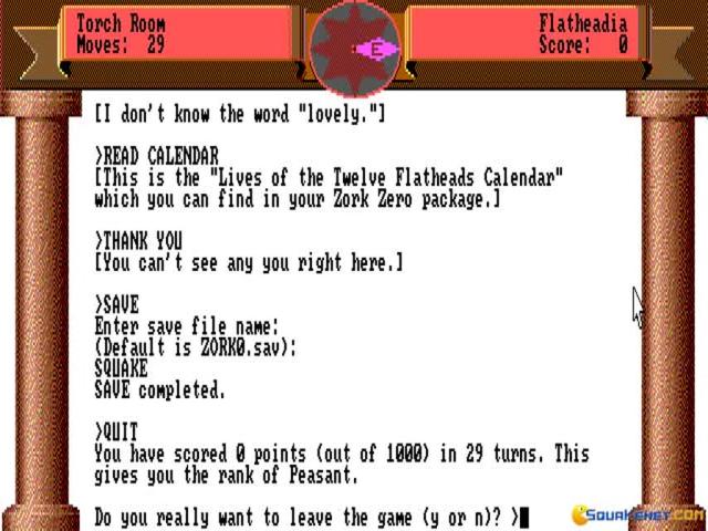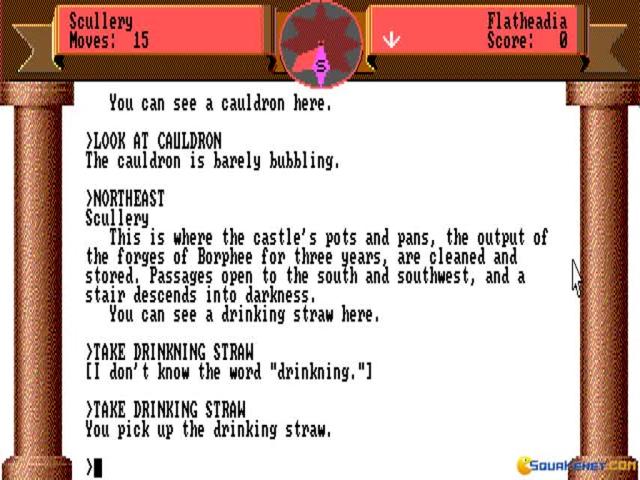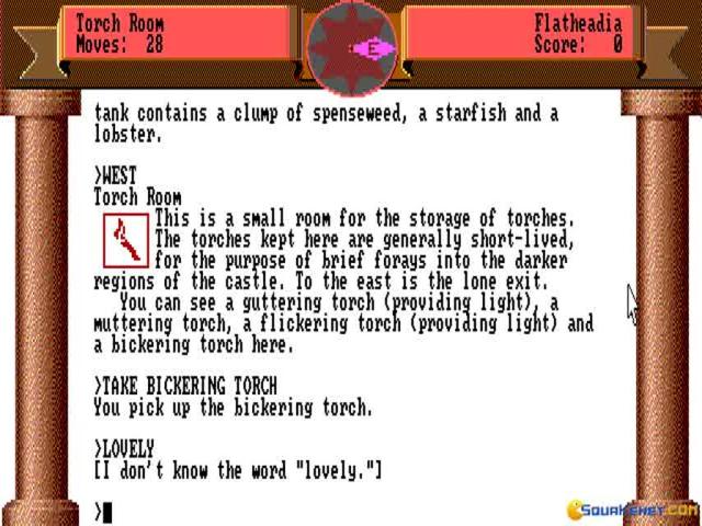 The Zork series has been talked about at large, both to underpin the factors that have made text based adventures stand out, but also to underline their inherent problems. This game, the second in the series and a prequel to the first, in terms of the story that it tells, is rather more happy to throw seemingly absurd situations at you, and to seem to dwell more on storytelling, rather than try to achieve a balance of elements. Some of the humor of the first seems to have been gone, not because Zork Zero is more serious, but because it seems more poised to make himself more liked, more out there and bigger. This means that , while Zork managed an interesting blend of storytelling with puzzles, this one seems to pack in the occasional puzzle from time to time, as if player interactivity wasn't central to this one. Don't get me wrong, if you're a fan of text adventures this one is not going to disappoint, but it's going to offer you a less balanced interactive experience, with a story whose atmosphere is more heavier than the first game.